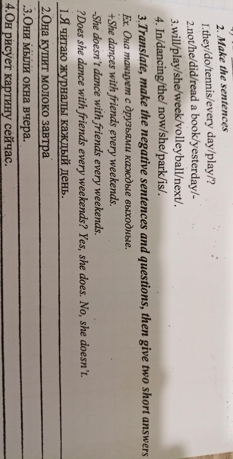 2.He did not/didn't read a book yesterday.