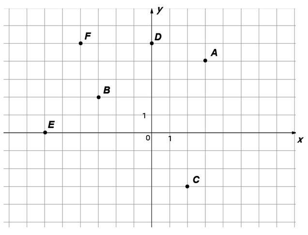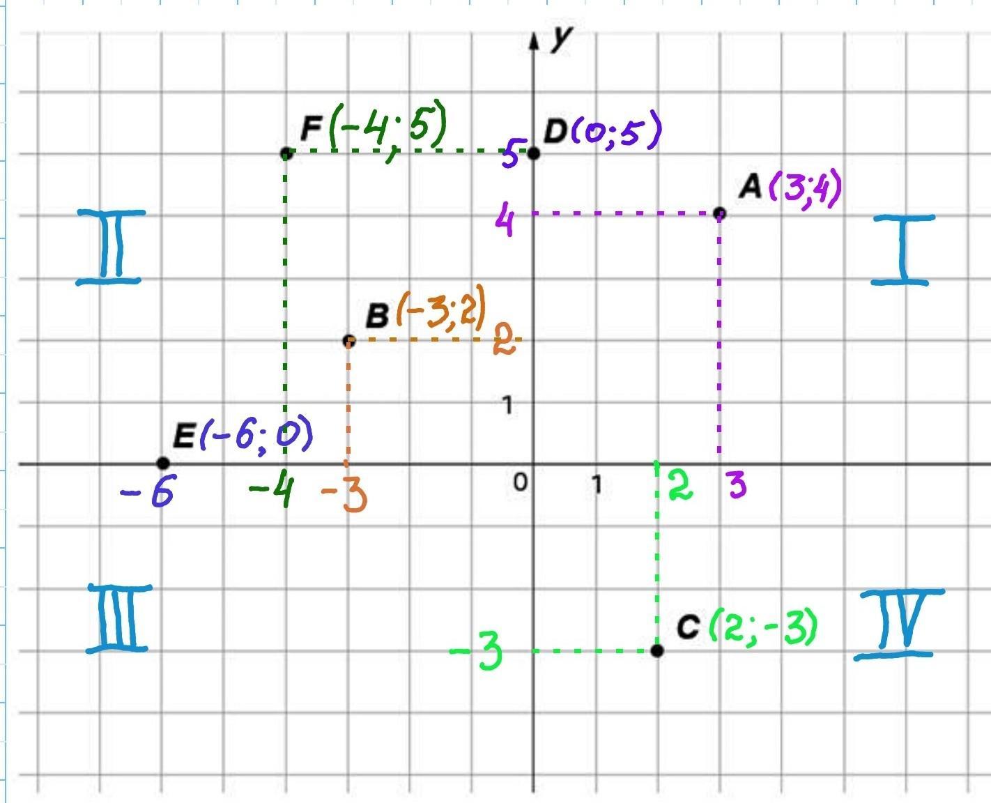 A(3;4), B(-3;2), C(2;-3), D(0;5), E(-6;0), F(-4;5)