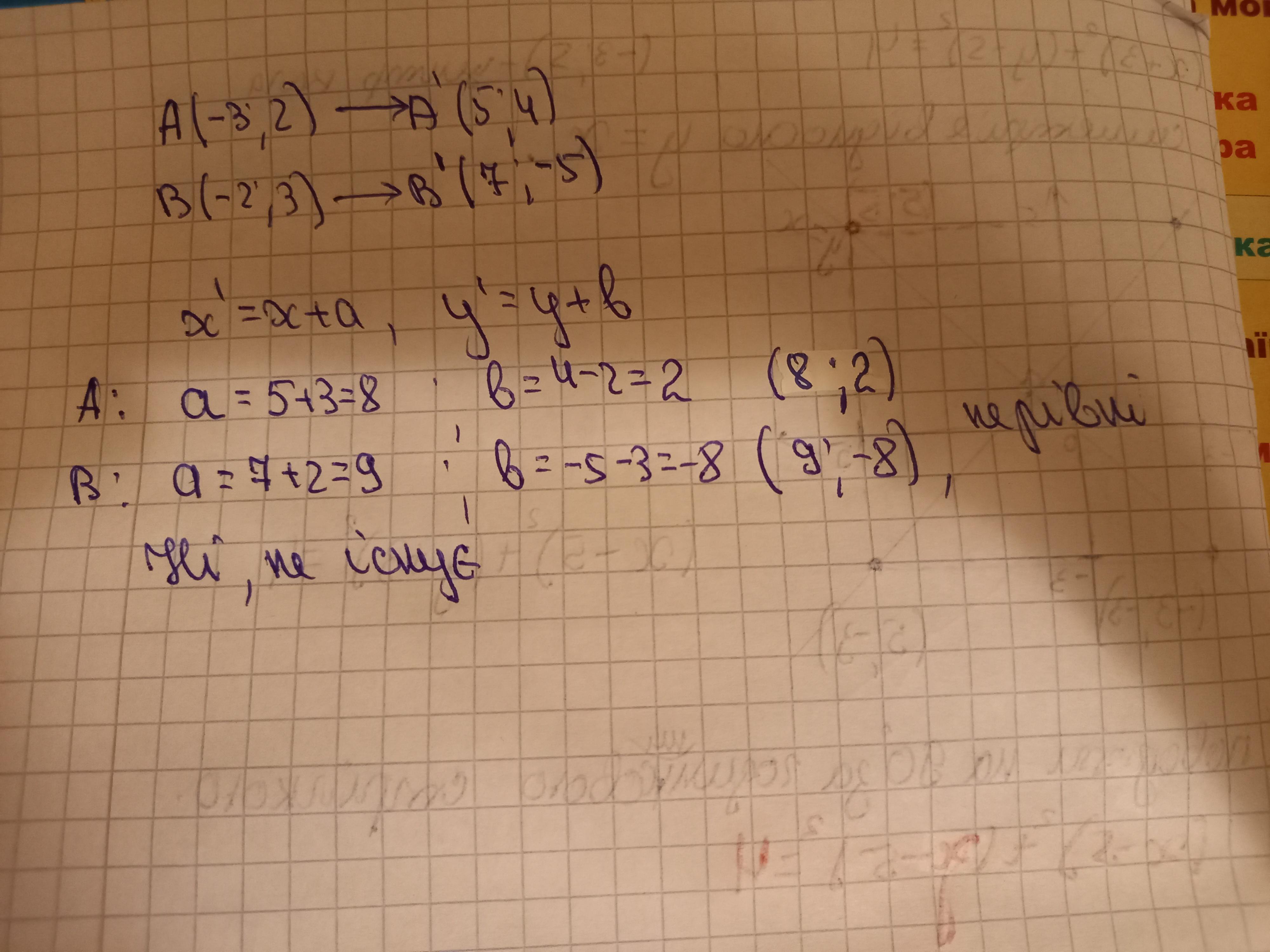 Чи існує паралельне перенесення таке, яке переводить точку А(-3;2) в точку А'(5;4) і точку В(-2;3) в точку В-(7;-5)