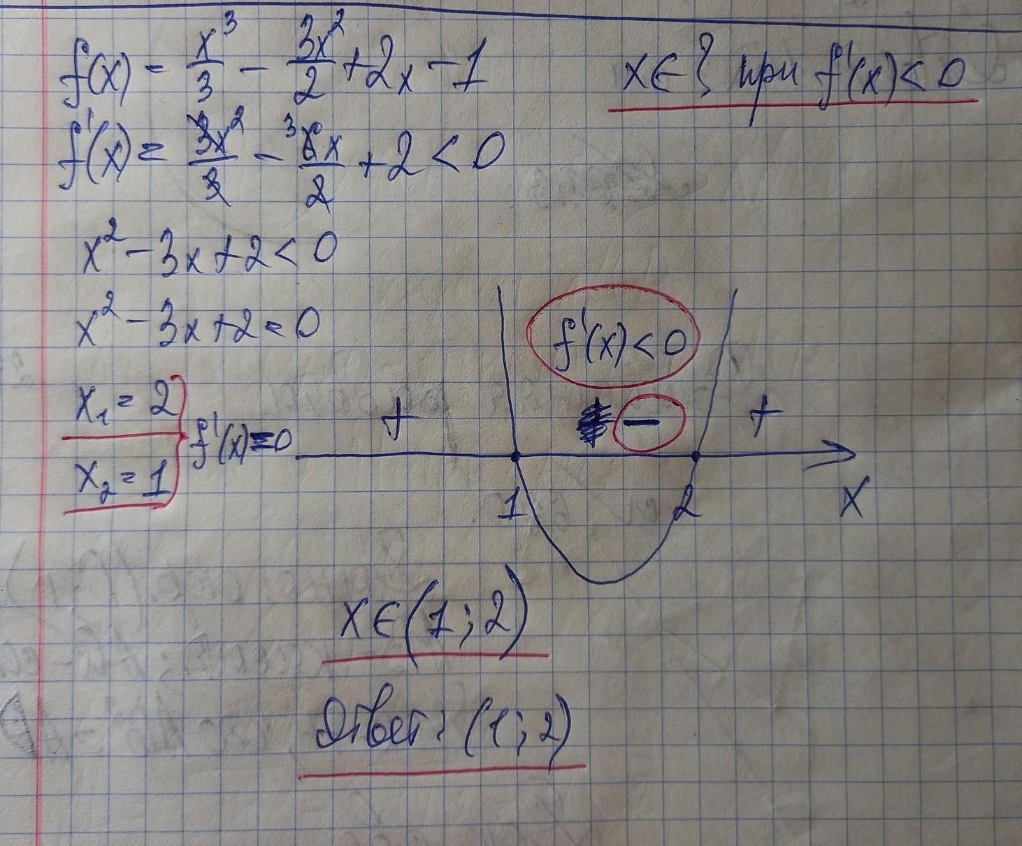 f(x) = x^3/3 - 3x^/2 + 2х -1 отрицательны