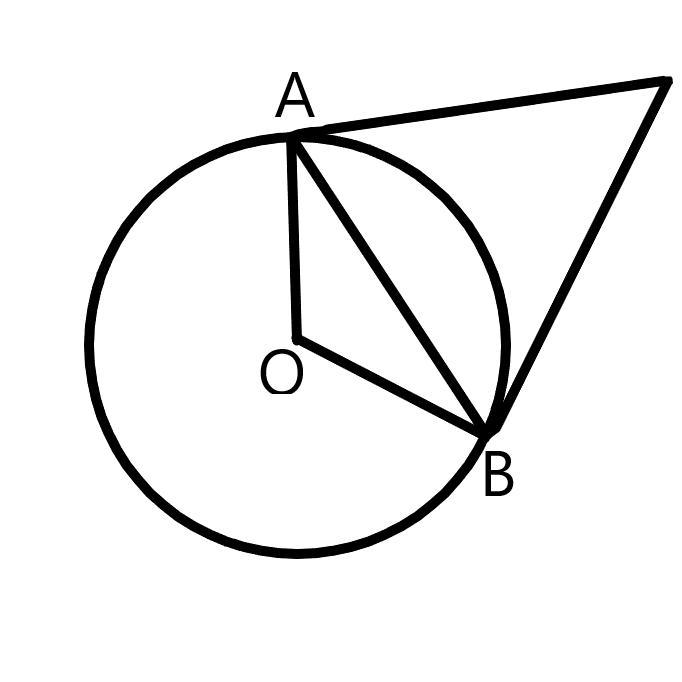 Касательные в точках A и B к окружности с центром О пересекаются под углом 72 градуса. Найдите угол ABO. Ответ дайте в градусах.