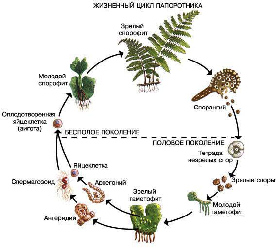 Вот такой цикл жизни (чередования спорофита и гаметофита) у папоротников