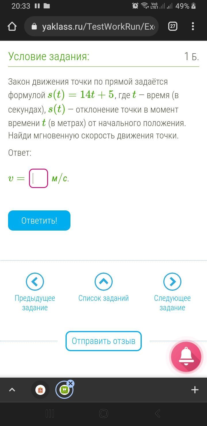 Мгновенная скорость это производная функции пути от времени. Здесь путь линейно зависит от скорости. Производная константа и равна 14.