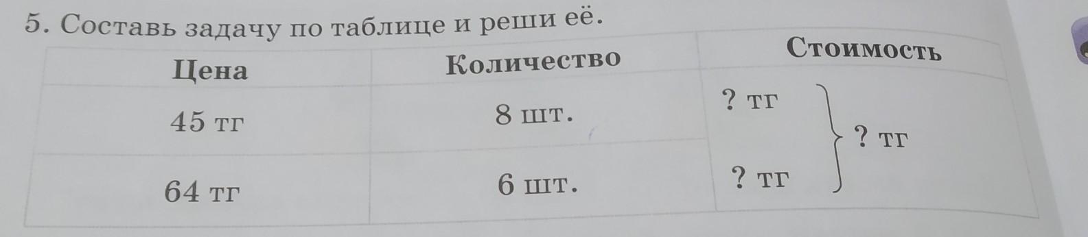 составь задачу по таблице и реши её.
