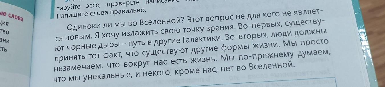 Читаем и пишем 3. Ученик 5-го класса написал эссе «Одиноки ли мы во Вселенной, стрела тируйте эссе, проверьте написание слов по орфографическому Напишите слова правильно.