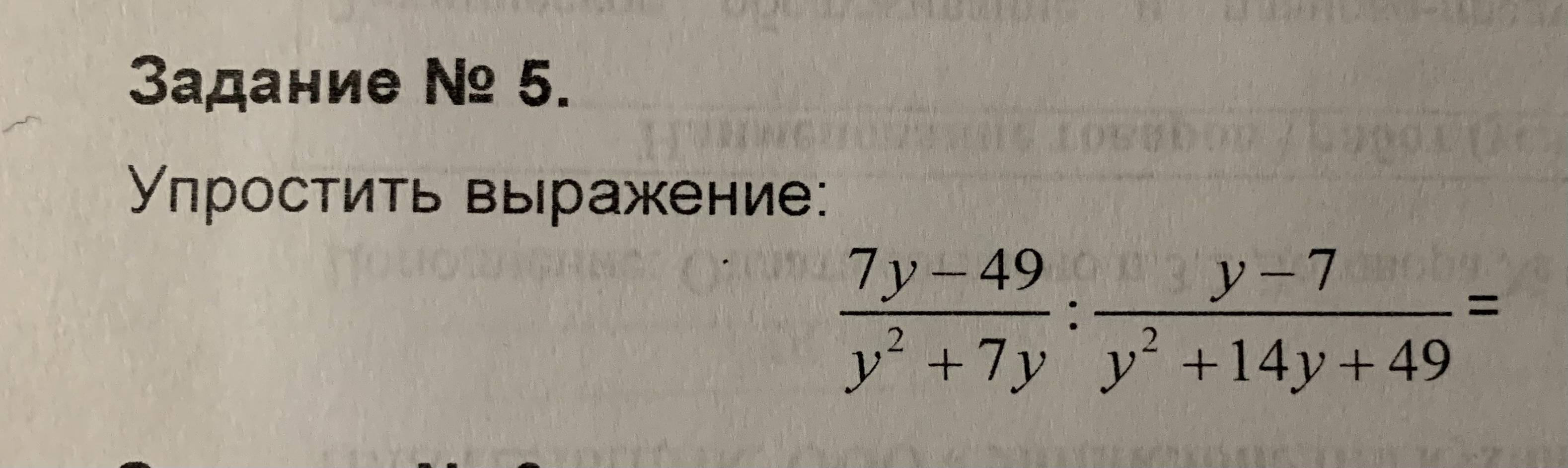 7(у-7)/у(у+7):(у-7)/(У+7)^2=7(y-7)/y(y+7)(*(y+7)^2/(y-7)=7(y+7)/y