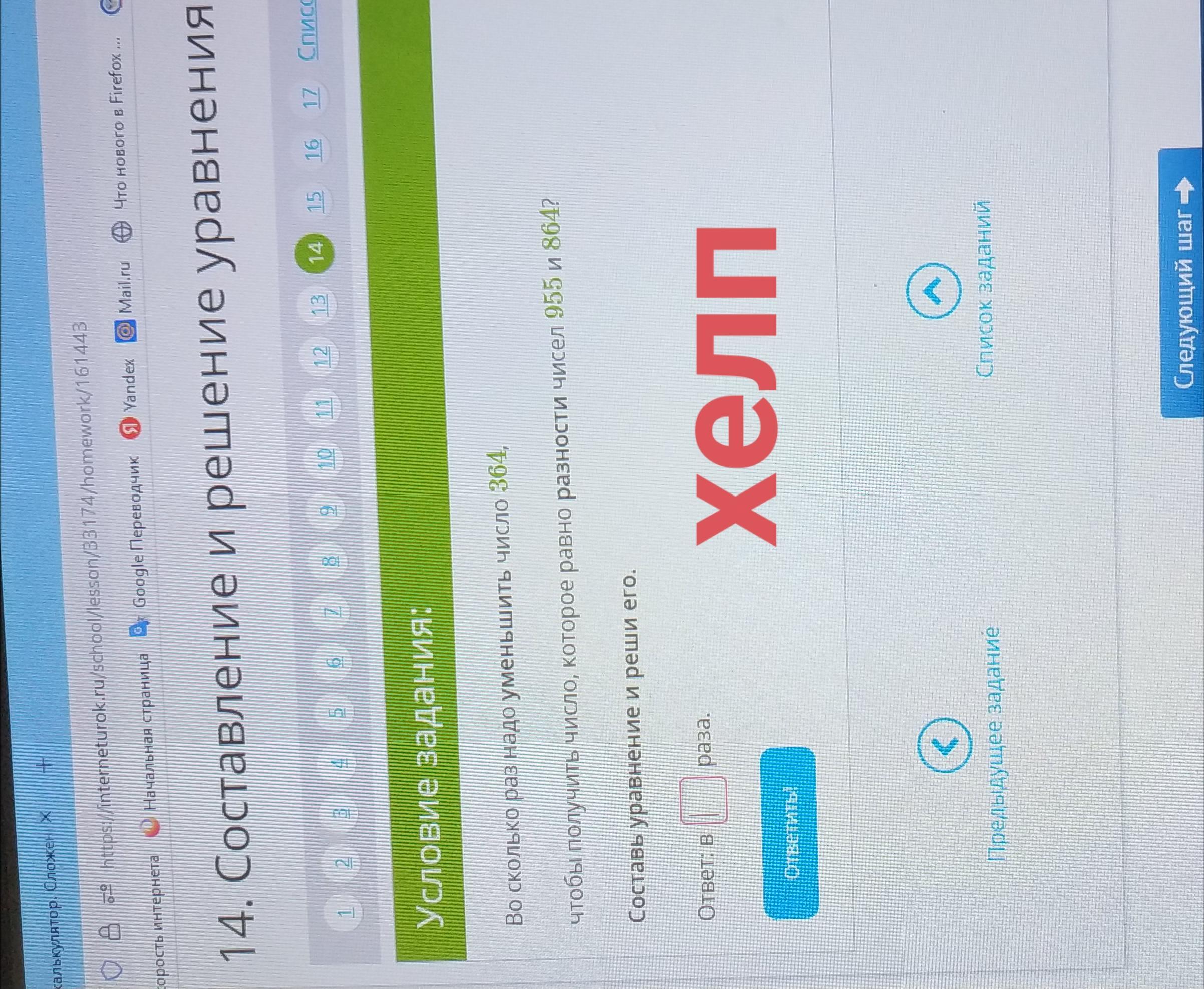 364 : х = 955 - 864