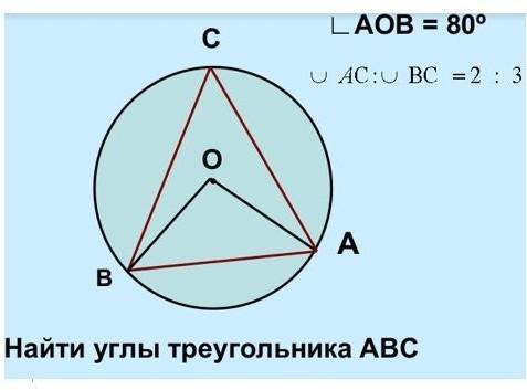 2)∪АС+∪ВС+∪АВ=360°(∪АВ= 80° т.к. АОВ- центральный угол опир. на неё)
