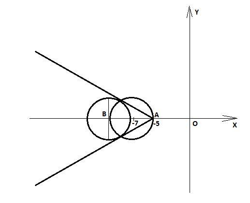 Правая - окружность с центром (-7; 0), она проходит через A(-5; 0).