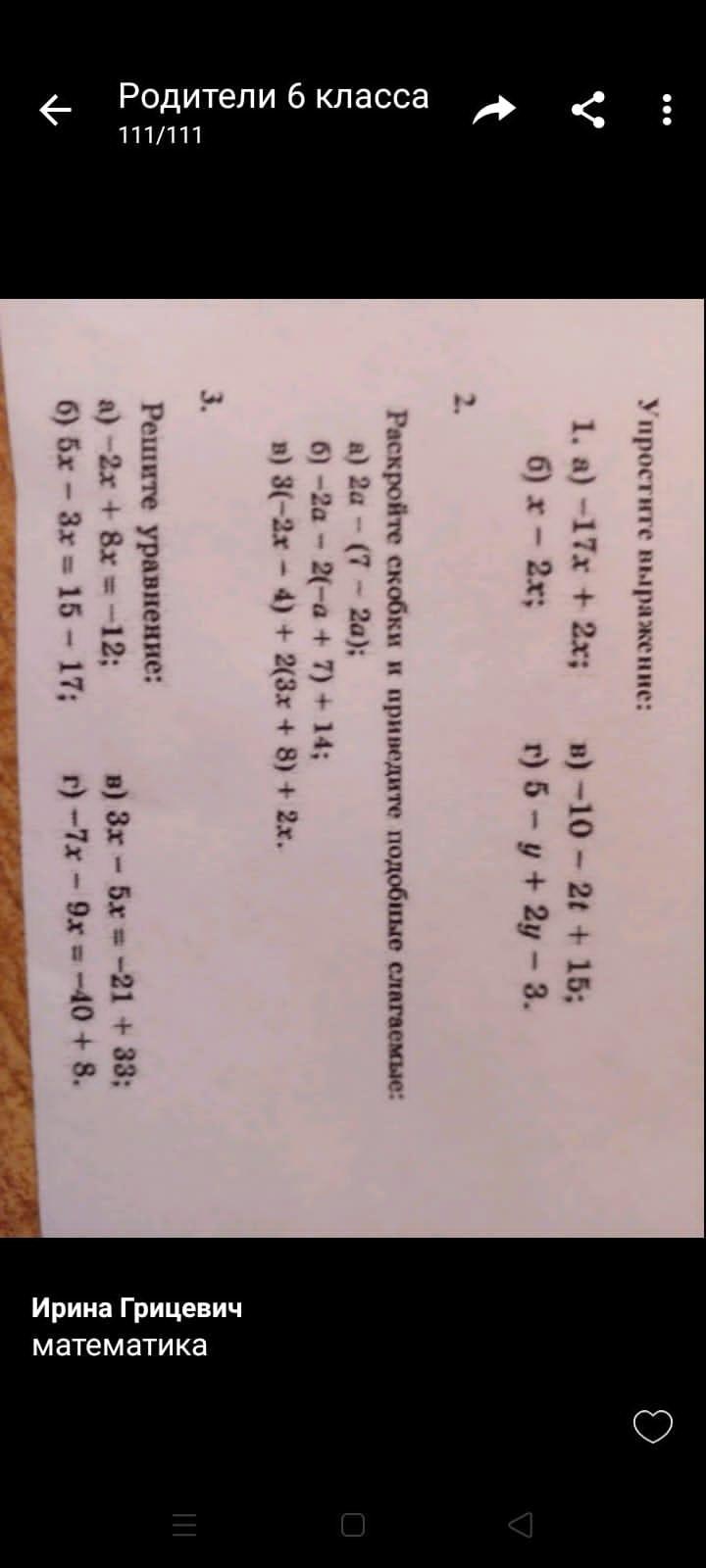 3.a) -2x+8x=-12 б)5x-3x=15-17 в)3х-5х=-21+33 г)-7х-9х=-40+8