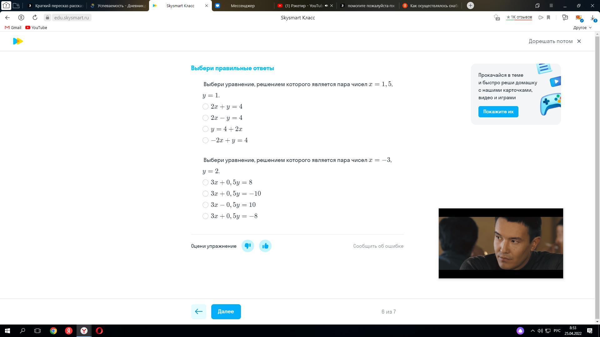 Ответ. Последнее уравнение 3х+0,5у=-8