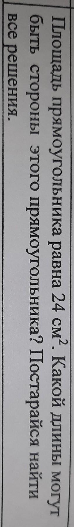 Площадь прямоугольника равна 24 см. Какой длины могут быть стороны этого прямоугольника? Постарайся найти все решения