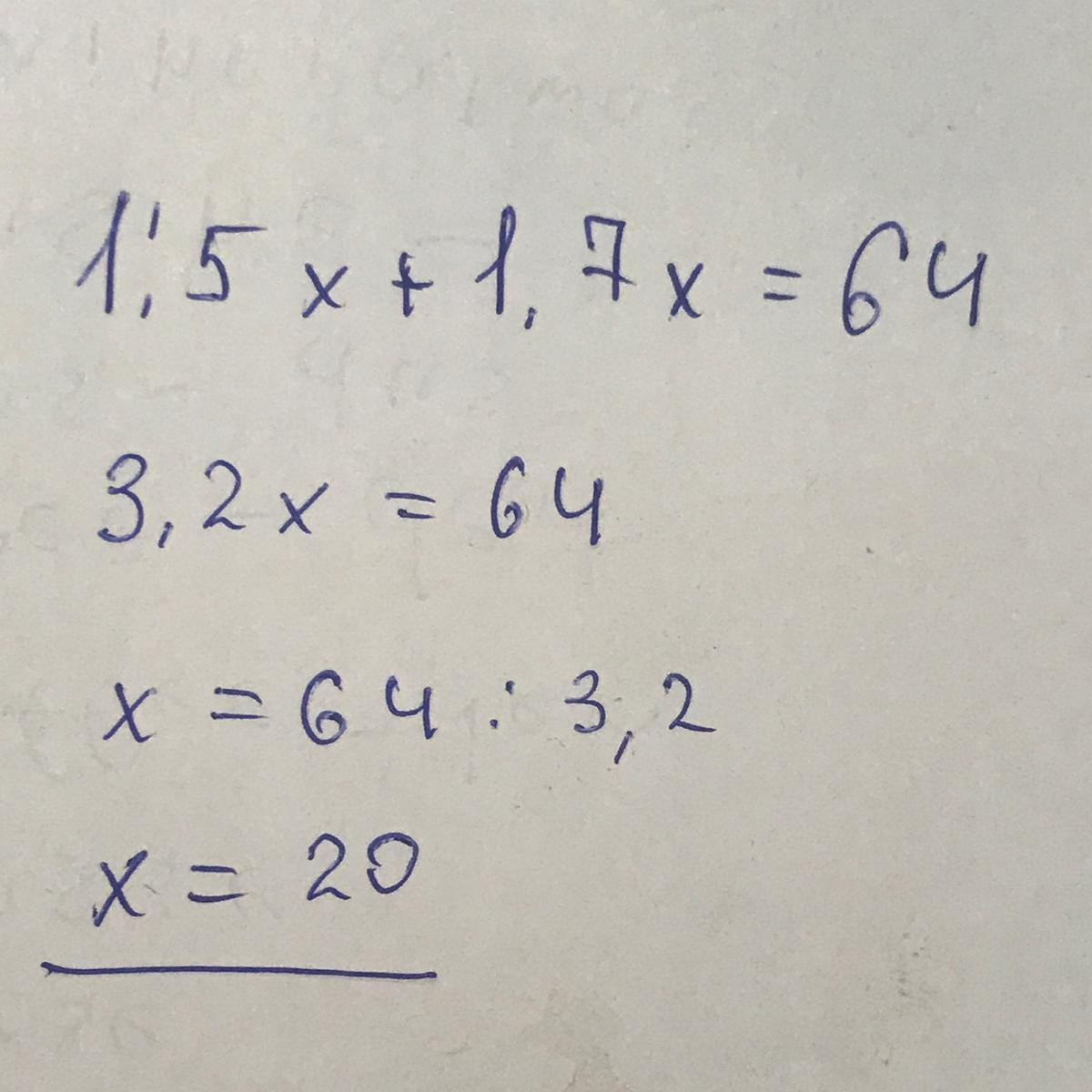 1,5 * 20 + 1,7 *20 = 30 + 34 = 64