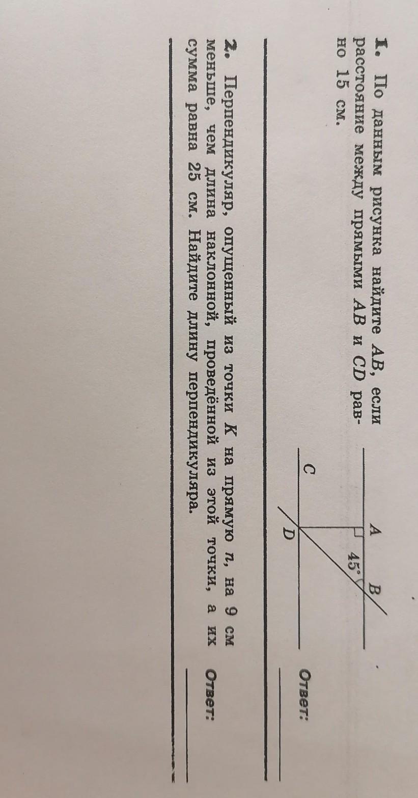По данным рисунка найдите AB, если расстояние между AB и CD равно 15 см