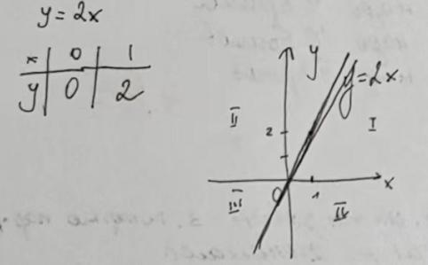 Для прямо пропорциональной зависимости у=kx 1)Найдите значение к. если у(3) 6 2) Заполните таблицу и постройте график 3) В каких четвертах расположен график? 4)Через что проходит график? 5)Как называется этот график?