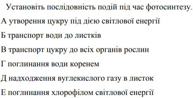 Послідовність подій під час фотосинтезу : Г Б Е Д А В