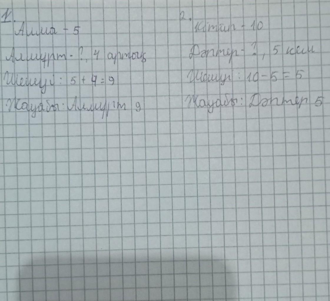 1. Қысқаша жазылуының бірі бойынша есеп құрастырып, оны шығар. - ?, артық - ?, кем — ? артық жауабы.