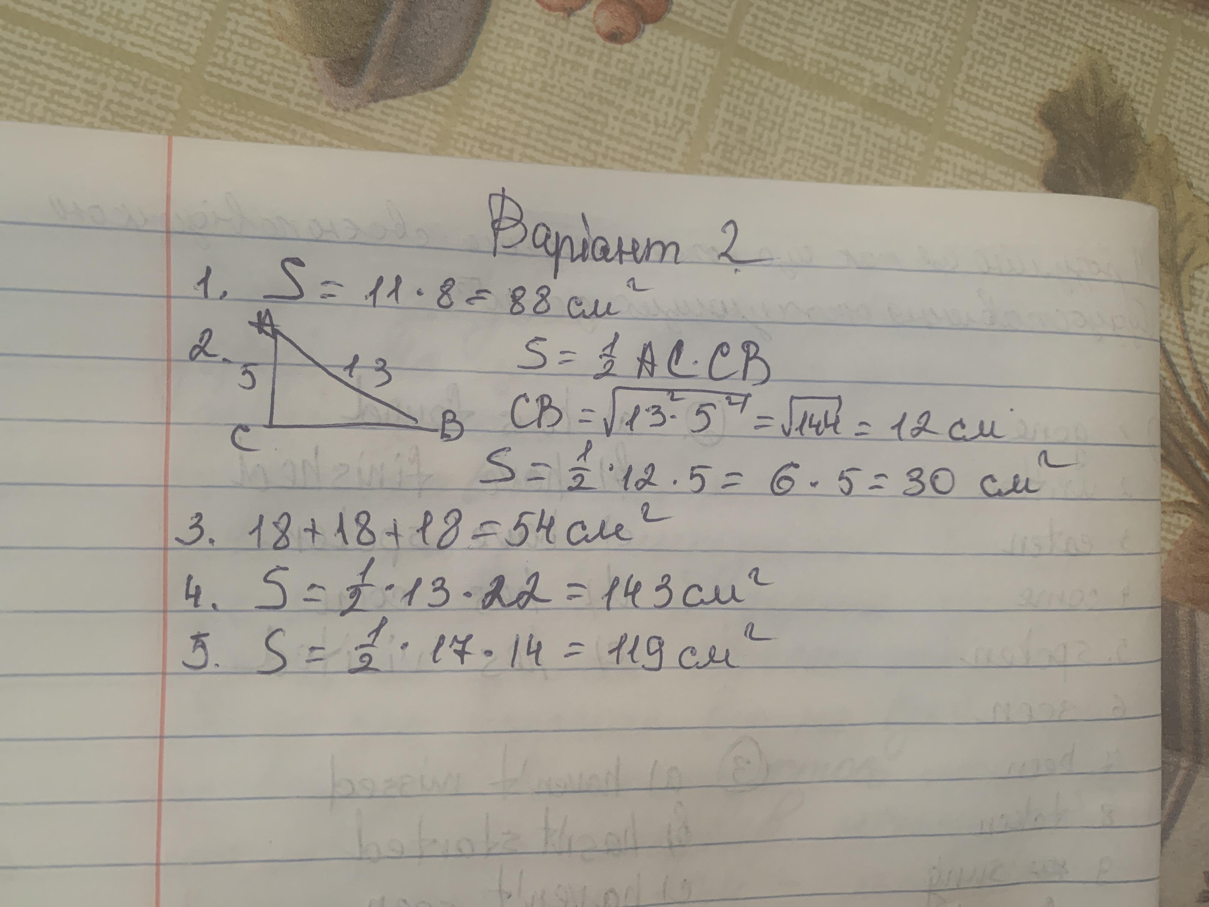 2) прямокутного трикутника з гіпотенузою 13 см і катетом 5 см;