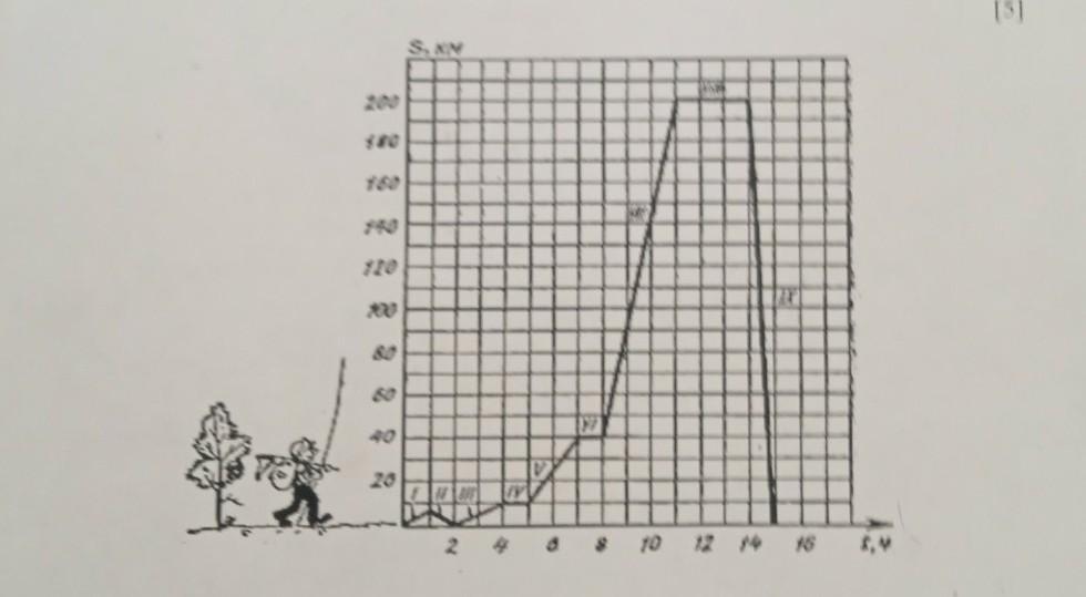 2.пользуясь графиком движения туриста,определите:1) сколько часов турист был в пути?2)какова продолжительность последней остановки?3)какова скорость на обратном пути на автомобиле?4) какое расстояние прошёл турист ща первые 5 часов?