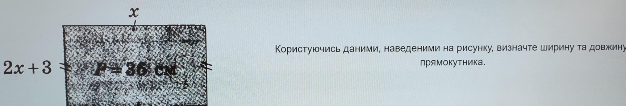 Довжина a - х см, ширина b- (2х + 3) см, периметр дорівнює 36см
