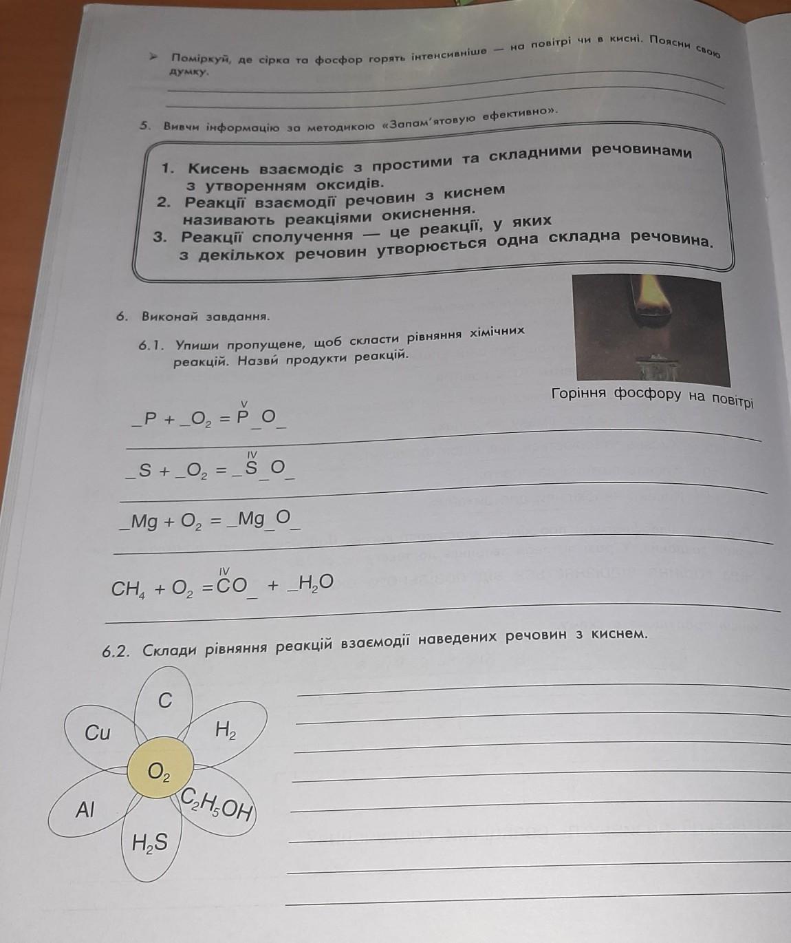 коефіцієнти я розставила знаючи валентність хімічних елементів, а реакції у другому завданні написала за хімічними властивостями кисню, типу з чим він реагує
