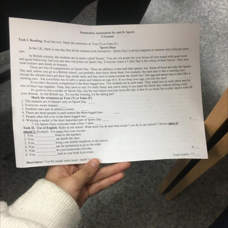 in our school. What must you do and what mustn't you do in our school? Choose must on
