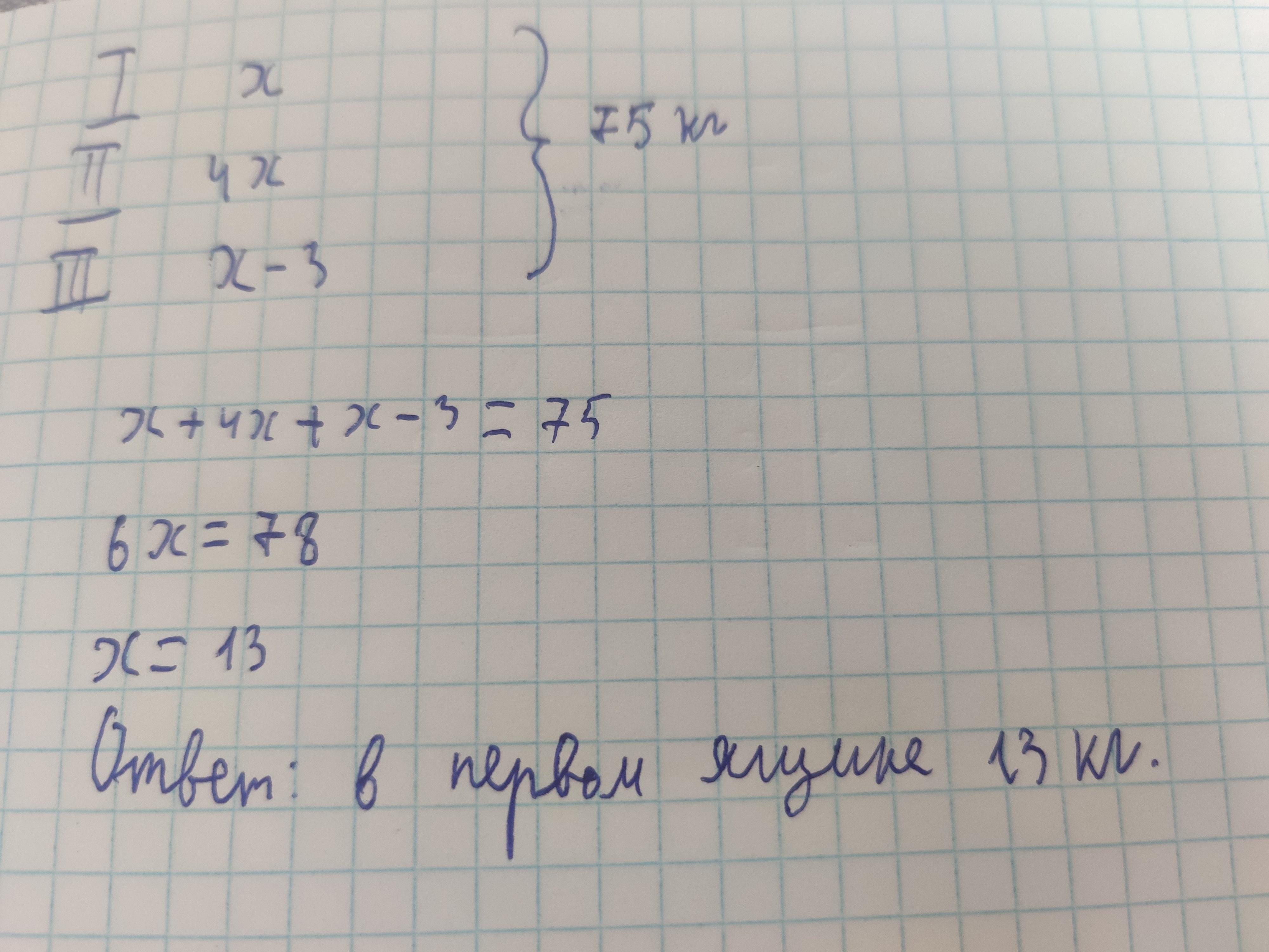больше, чем в первом, а в третьем – на 3 кг меньше, чем в первом.