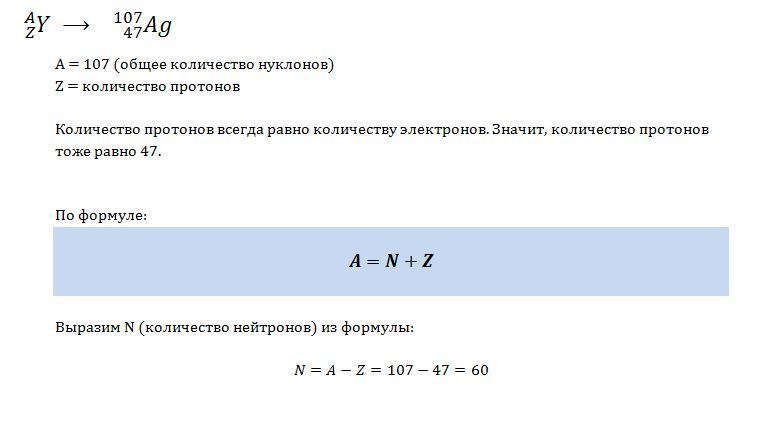 В ядре атома серебра 107 частиц,а вокруг ядра вращается 47 электронов.Рассчитать,сколько в ядре этого атома.
