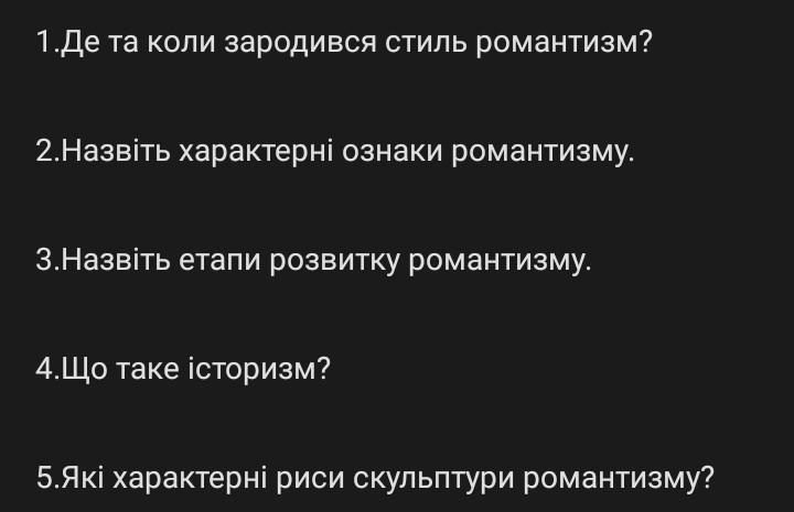 Допоможіть будь ласка дуже терміново!!!!! Потрібно відповісти на питання з мистецтва за 8 клас хто знає будь ласка напишіть дуже прошу!!!! Це дійсно дуже терміново!!