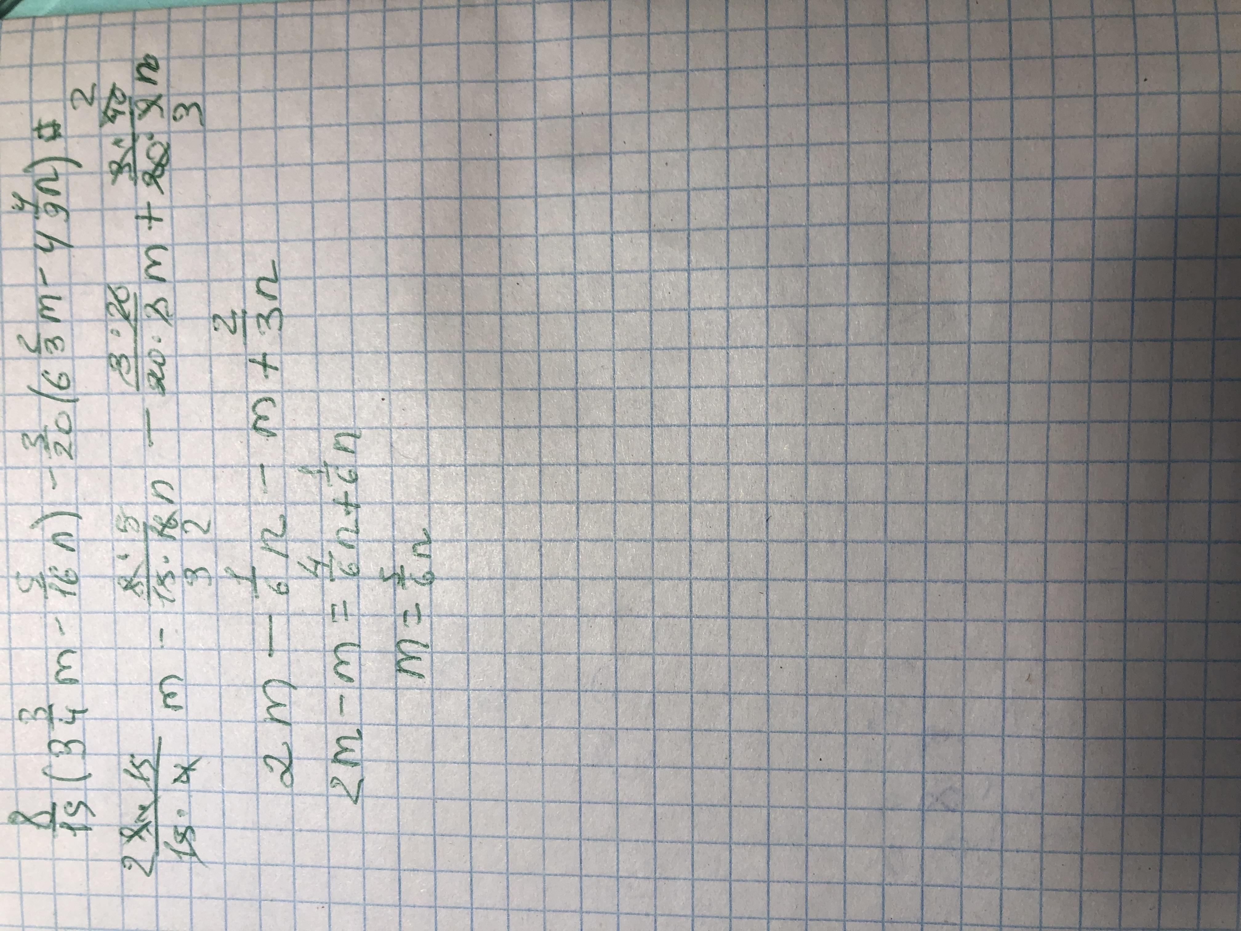 8/15(3. 3/4m - 5/16n) - 3/20(6. 2/3m - 4. 4/9n) =