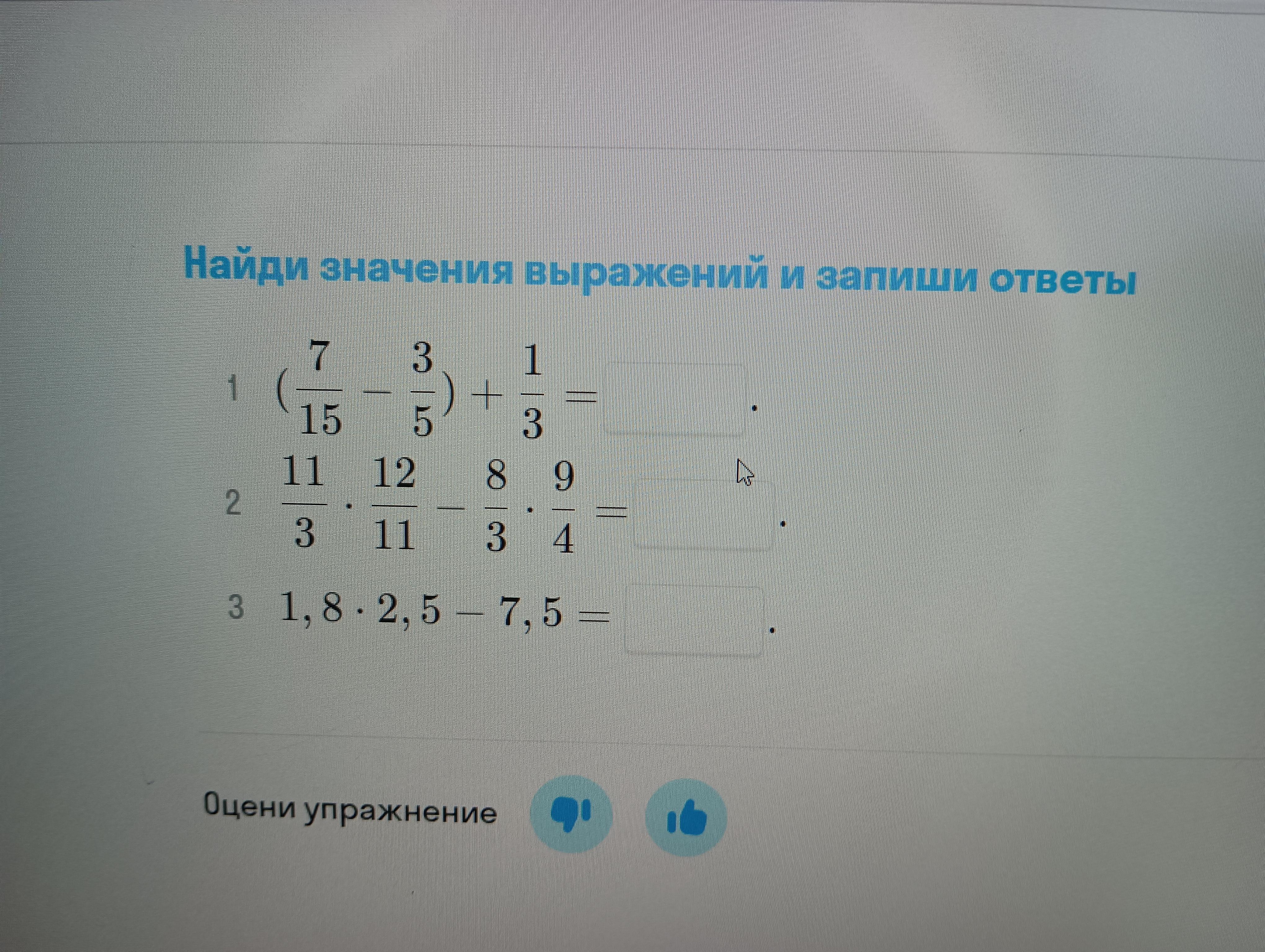 1) 7/15 - 3/5 = 7/15 - 9/15 = -2/15