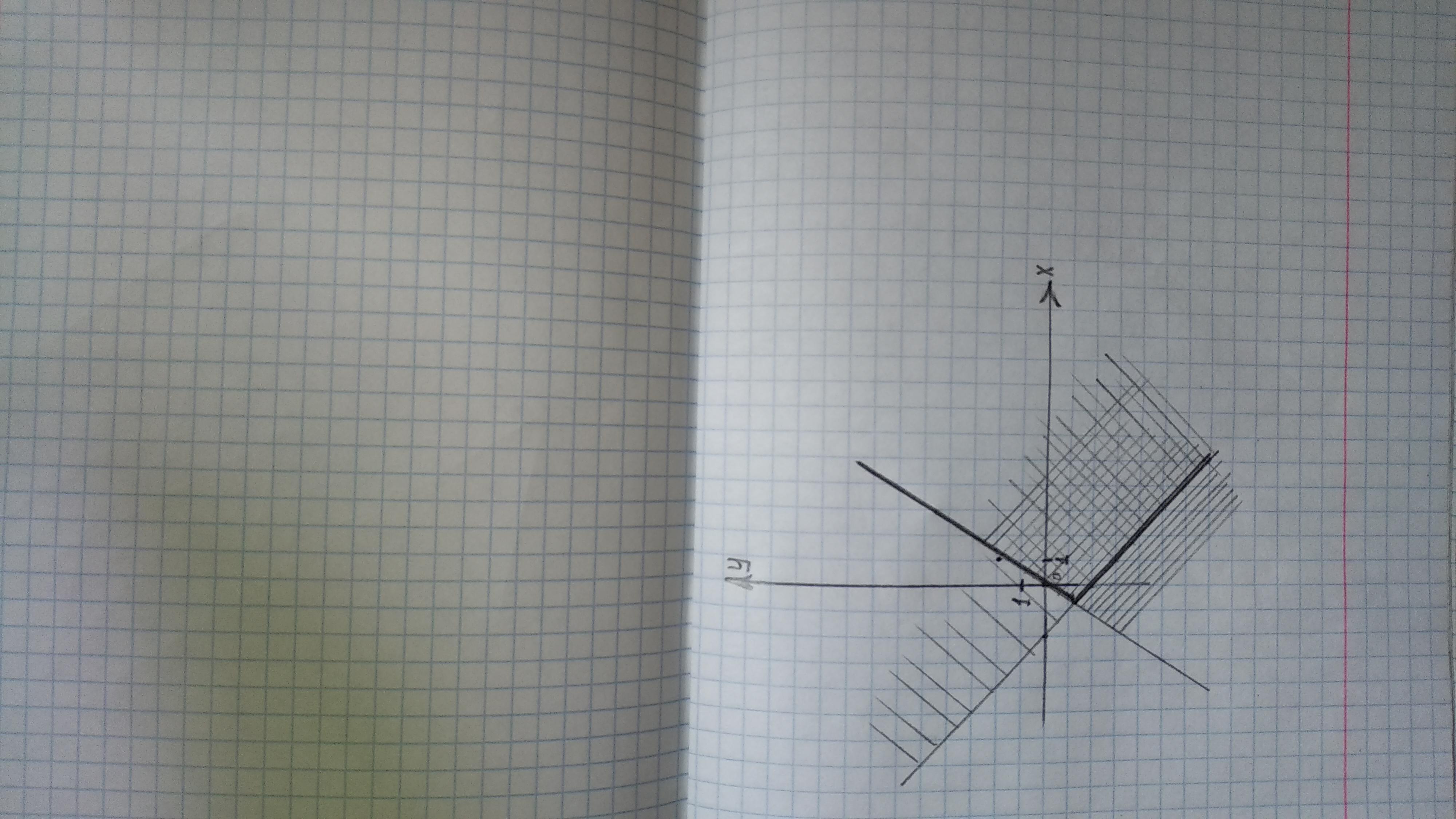 область определения показана на рисунке ниже, это множество точек плоскости, изображенное двойной штриховкой, поскольку подкоренные выражения не могут быть отрицательны, т.к. даны корни четной степени.