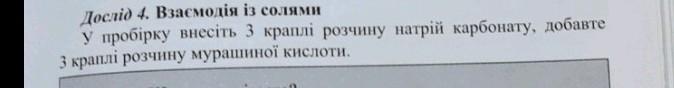 Як бачимо по реакції, виділяється вуглекислий газ. Отже, спостереження: утворення бульбашок СО2