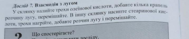 олеїнова та стеаринова кислоти реагують з лугами з утворенням мильного розчину: стеарат натрію, олеат натрію
