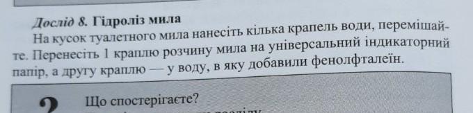 оскільки водний розчин мила має лужне середовище, то фенолфталеїн пофарбується в малиновий колір, а універсальний індикатор покаже синій колір