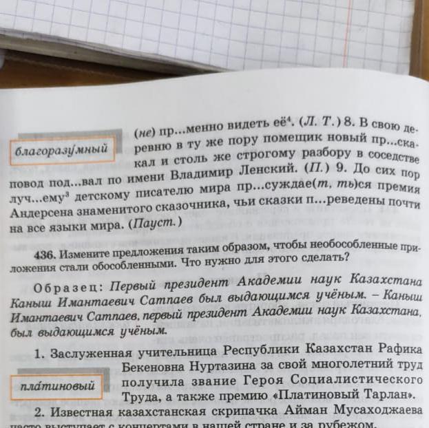 435. Спишите, вставляя пропущенные буквы и запятые. Обьясните пра вописание слов и пунктуацию в предложениях. Укажите способы выраже ния определяемых слов и относящихся к ним обособленных приложений.