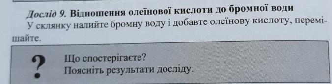 при додаванні бромної води до олеїнової кислоти відбувається знебарвлення розчину