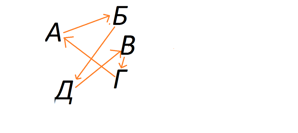 В некотором государстве пять городов: А,Б,В,Г,Д. Между каждыми двумя городами есть дорога. Турист находиться в городе А.Он хочет за одну поездку посмотреть каждый город, а затем вернуться обратно в город А. Определите, сколько различных маршрутов имеется у туриста, но таких.в которых турист не посещал бы ни одного города( кроме А) дважды.