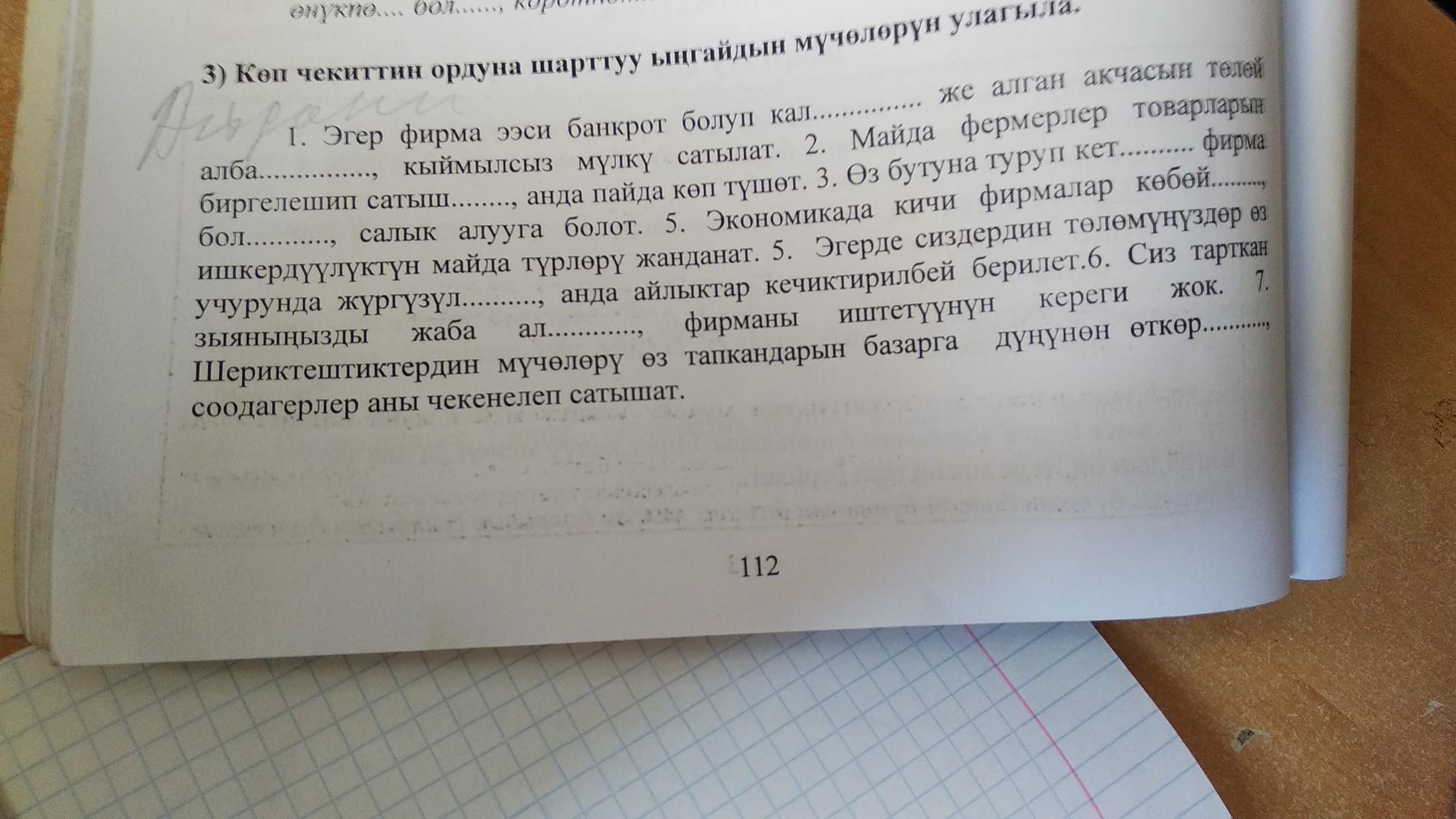 1. калСА, албаСА. 2.сатышСА. 3.кетСЕ, болСО. 4.көбөйСӨ. 5.жүргүзүлСӨ. 6.алСАЗ. 7.өткөрСӨ.