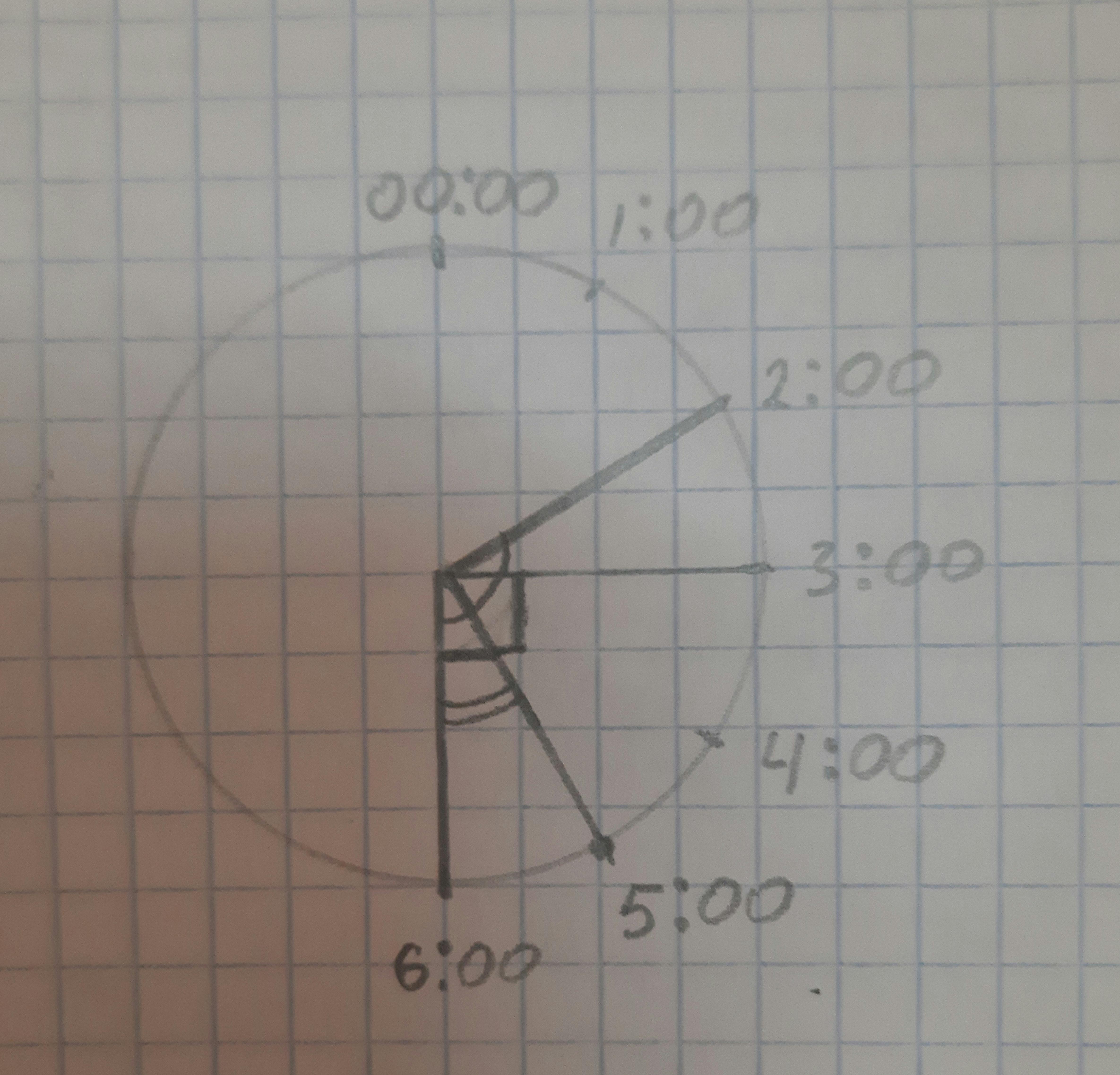 873 какой острый прямой тупой или развернутый угол образуют стрелки часов когда показывают время 2:00 3:00 5:00 в 6:00