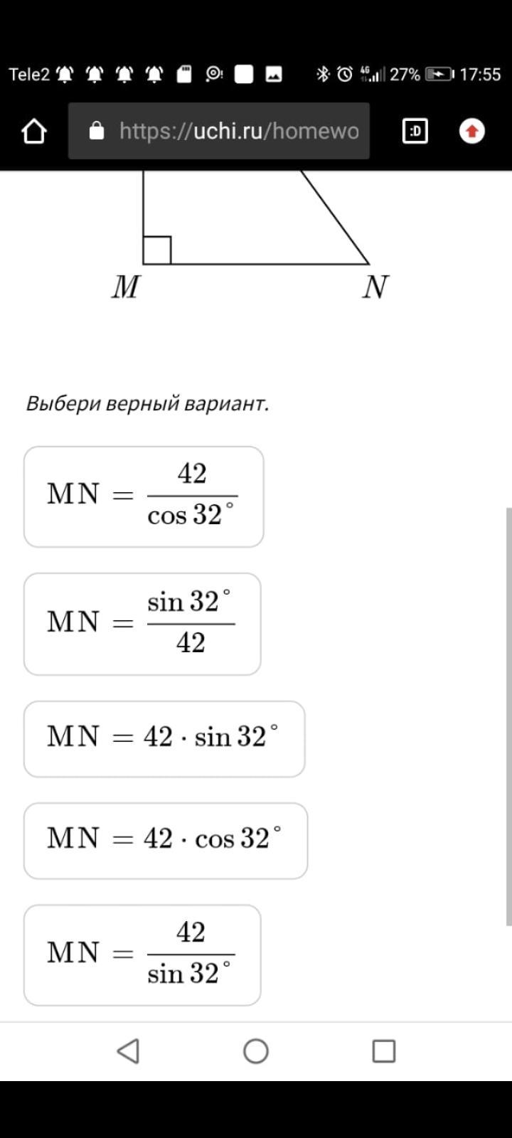 " MN= sin32° делать на 42 " думаю правильно будет так)