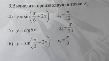 y'(П/24)=-6/sin²(П/4)=-6/(1/2)=-12