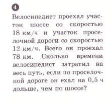 2,4+0,5=2,9 ч-----велосипедист ехал по проселочной дороге