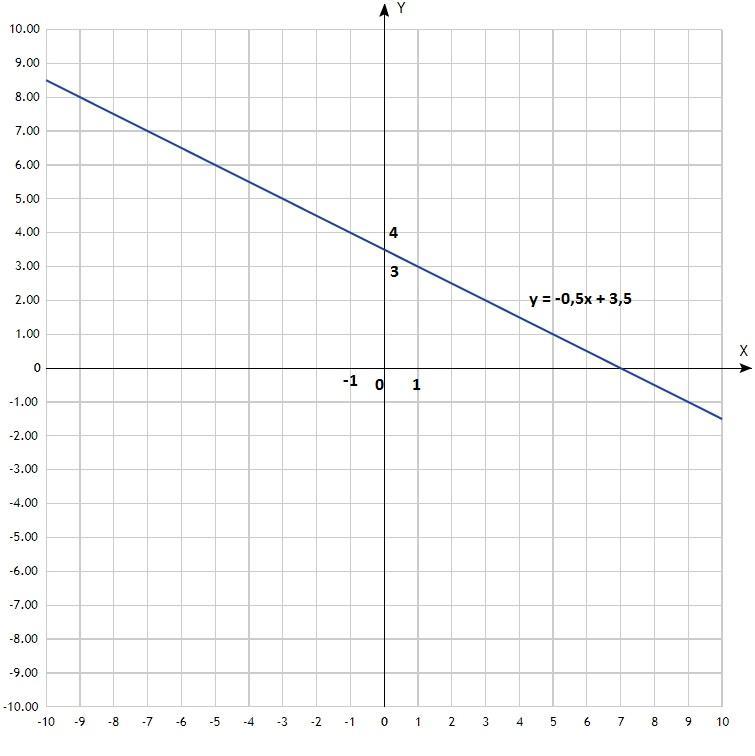 1) Постройте график функции: у = -0,5х + 3,5.