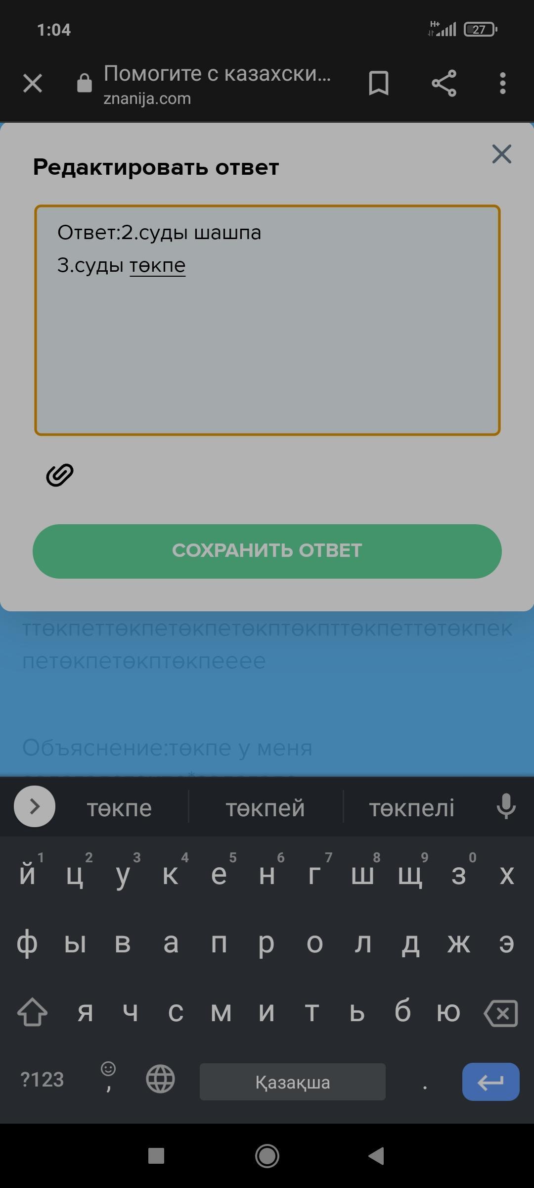 Объяснение:төкпе у меня залагалотөкпе*залагало