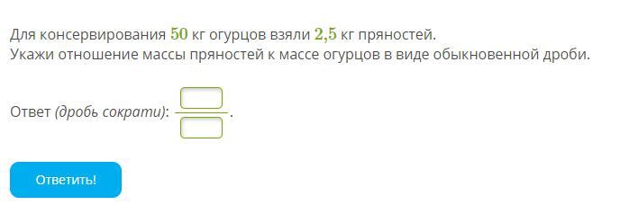 Сложного ничего не вижу. Отношение это деление. 2,5/50. Домножим на 2 (5/100) и разделим на 5 (1/20). Получится ответ 1/20