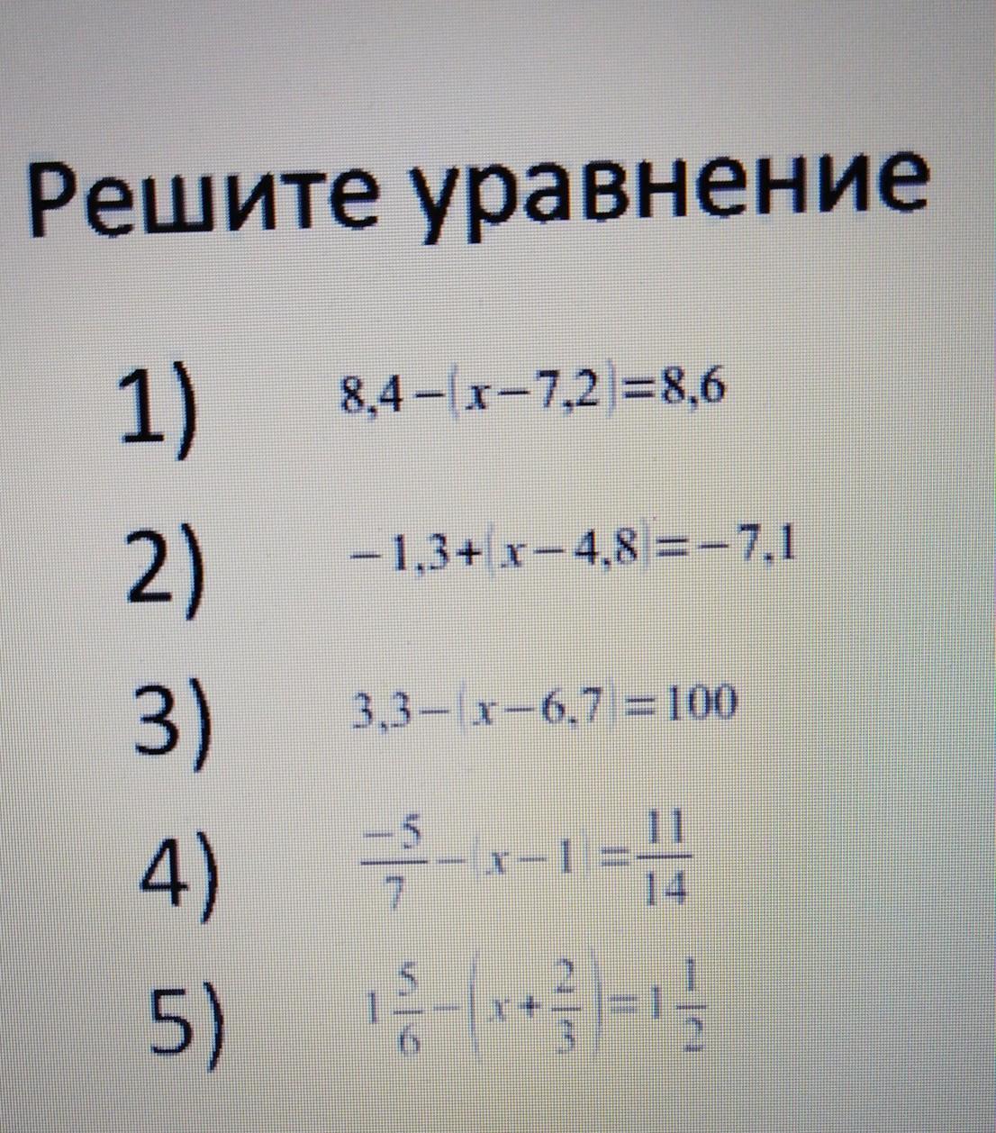 8,4-(х-7,2)=8,6 выписывает х-7,2=8,6+8,4 следущая строка х-7,2=17,0 следущая х=17,0+7,2 следущая х=24,2