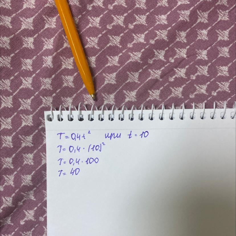 При нагревании температура тела T зависит от времени нагревания t следующим образом: T = 0,4t².