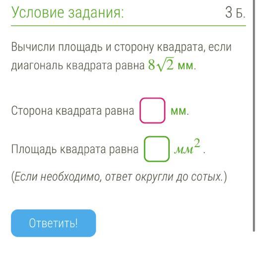 2) диагональ и две стороны квадрата образуют прямоугольный треугольник,