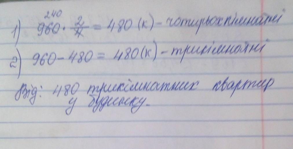 У будинку 960квартир 2/4квартир чотирьохкімнатні,а решта трикімнатні.Скільуи в бцдинку трикімнатних квартир